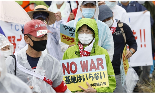 Japanese residents participate in a demonstration on May 15, 2022, to demand the withdrawal of US military bases in Okinawa on the 50th anniversary of Okinawa Prefecture's return to Japan in 1972 after 27 years of US control. Photo: IC