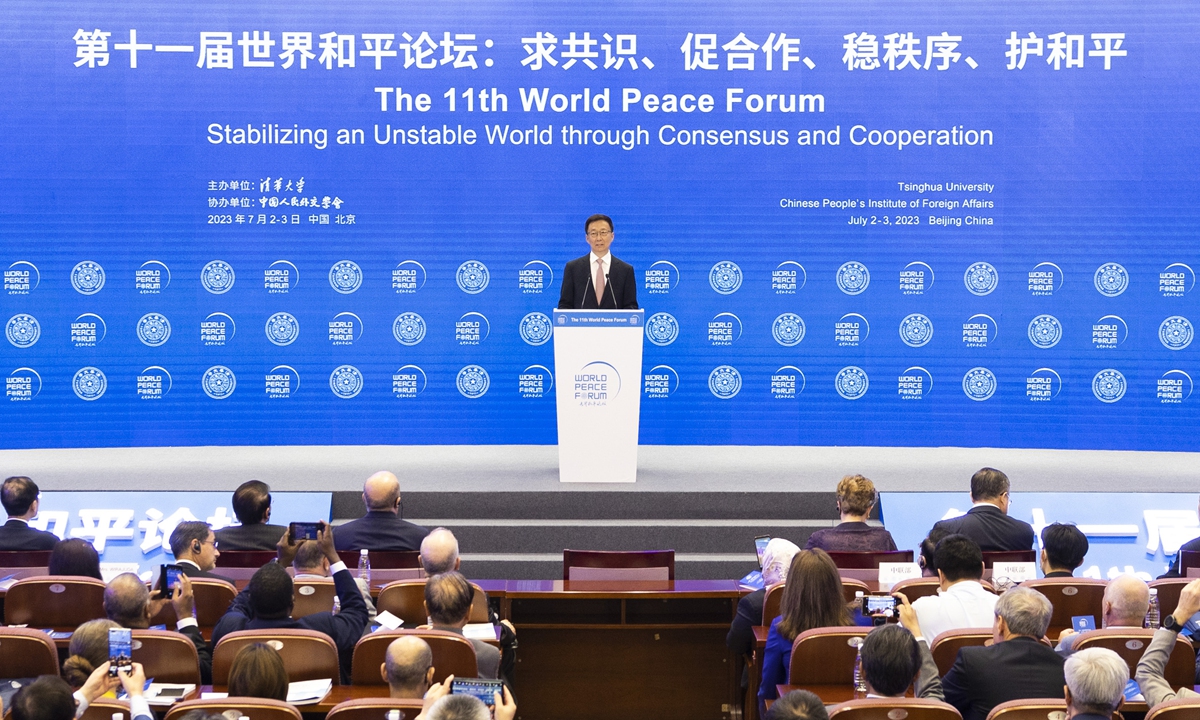 Chinese Vice President Han Zheng addresses the opening ceremony of the 11th World Peace Forum at Tsinghua University in Beijing, capital of China, July 2, 2023. Photo: Xinhua