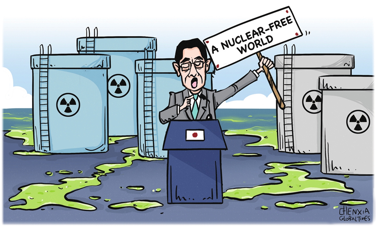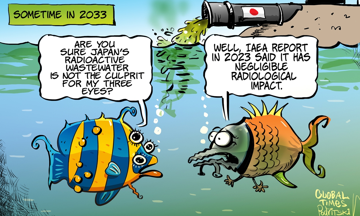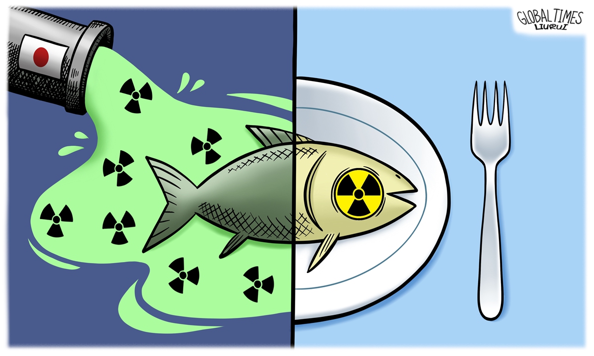 In response to Japan's decision to discharge nuclear-contaminated wastewater from the Fukushima Daiichi nuclear power plant into the sea, the Global Times has produced a series of cartoons condemning Japan's irresponsible behavior from different perspectives, such as public opposition, the radioactive contamination to marine organisms, and the Japanese government's selfish behavior against the global community.