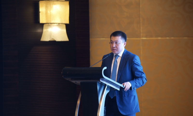 Marat Karimzhanovich Karabayev, Minister of Industry and Infrastructure Development of Kazakhstan, gives a speech at an investment promotional forum in Beijing on July 6, 2023. Photo: Courtesy of the Embassy of Kazakhstan in China