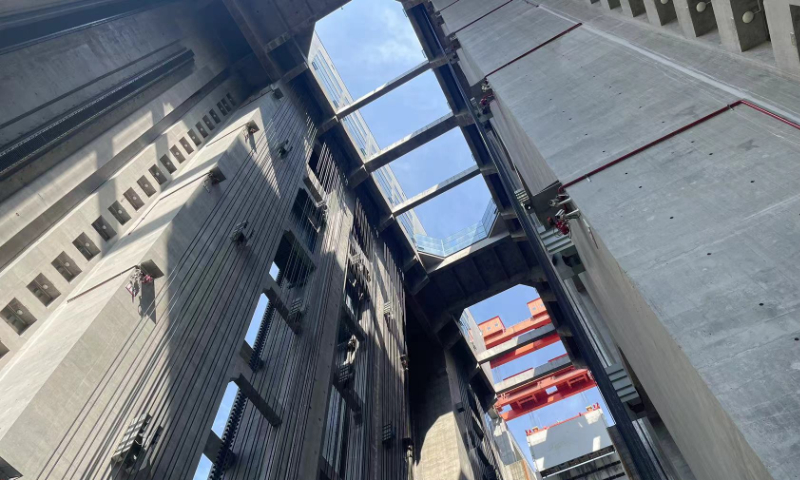 The designed time for a vessel to pass through the ship lift is approximately 40 minutes, significantly shorter compared with the 150 minutes required to pass through the ship locks. This has resulted in a significant reduction in the time required to navigate through the dam, an onsite staff at the dam told the Global Times on Tuesday.
