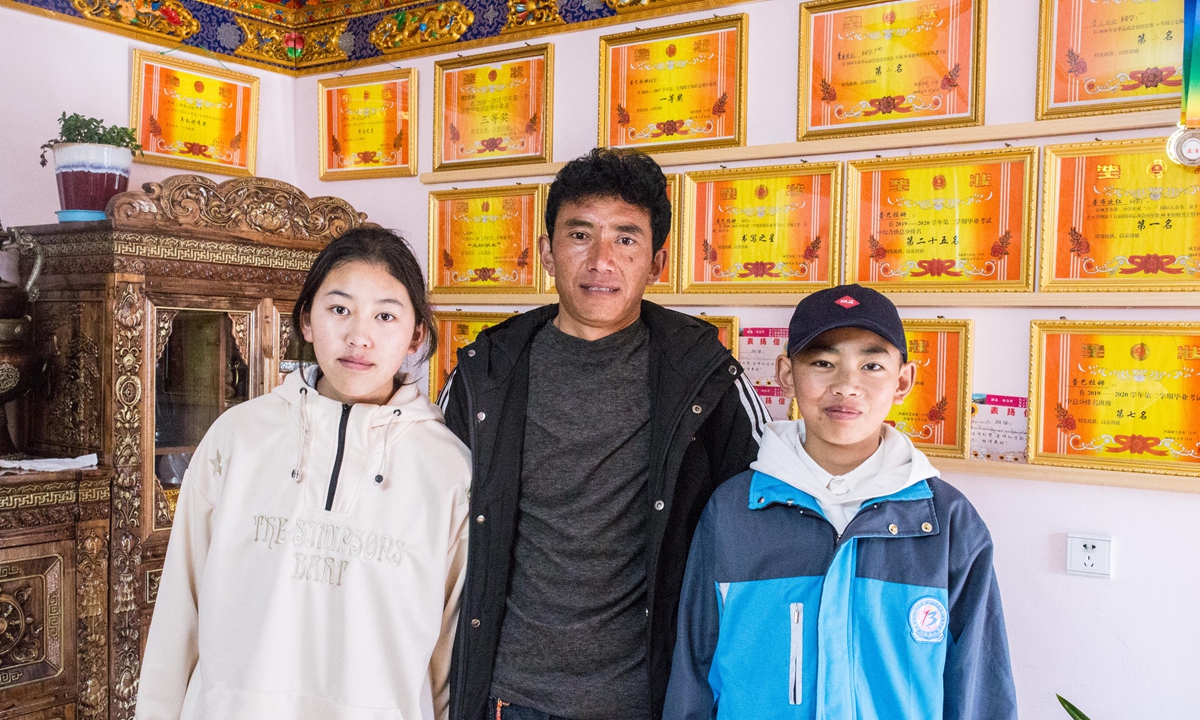 Dawa Gyaltsen's two children currently attend a boarding school in the city of Nyingchi, returning home at weekends. The living room wall in their home is adorned with certificates and awards earned by his daughter and son, ranging from academic achievements to handwriting and sports. "My daughter wants to become a doctor, and my son aspires to be a sprint athlete," he proudly shared with the Global Times reporters.