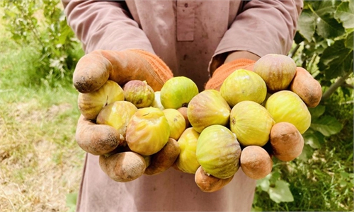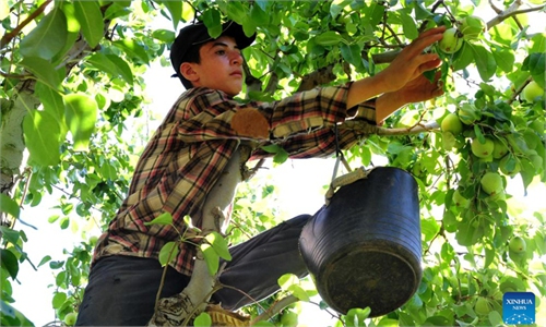 Farmers harvest pears in Ganzhou, East China's Jiangxi Province on July 26, 2023. The local government has been implementing supportive measures to guide local farmers to develop the industrial chain for special fruit crops and form a local rural tourism brand. Photo: VCG