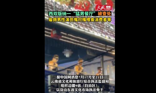 This restaurant's illegal performances were eventually investigated and punished during a centralized joint campaign led by the culture and tourism authorities between July 17 and 21, the Yunnan Provincial Department of Culture and Tourism said in an announcement on Wednesday night.