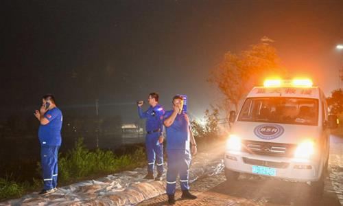 Rescuers head towards Shawo Village of Matou Town to carry out rescue operation in Zhuozhou, north China's Hebei Province, Aug. 3, 2023. Zhuozhou City is an area in Hebei that has been severely affected by rain-triggered floods. Local authorities set up 28 emergency rescue teams with a total of 8,755 people to help with the rescue and relief efforts. They worked in collaboration with soldiers stationed there and professional rescue teams. Photo: Xinhua