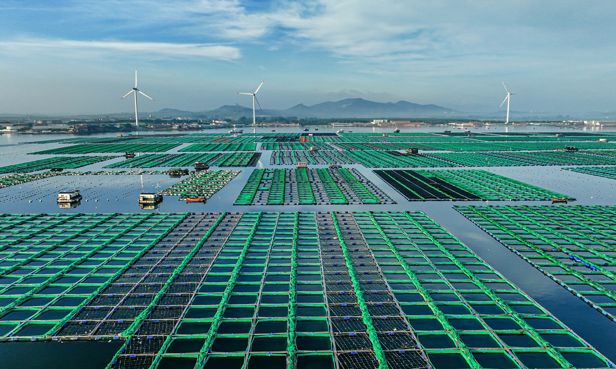 An aerial view of a sea ranch ecological farming area in Rongcheng, East China's Shandong Province, on August 2, 2023. Photo: Xinhua