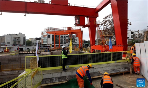 A worker conducts maintenance on the new "Innovation" tunnel boring machine on the Qingdao Metro Line 7 in Qingdao, East China's Shandong Province, on August 10, 2023. The machine adopts visualized data uploading, facilitating smart subway development. Photo: cnsphoto