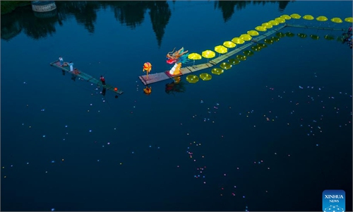 A foreign tourist plays with a Qinhuai Lantern while visiting a lantern maker's studio in Nanjing, East China's Jiangsu Province on August 13, 2023. The Qinhuai Lantern Festival was listed as a national intangible cultural heritage in 2006. Photo: VCG