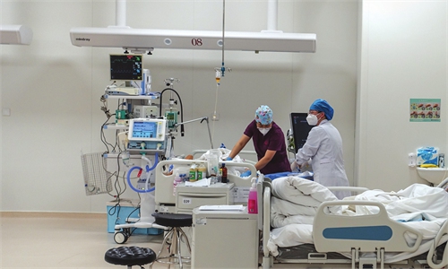 A medical worker conducts medical examination for a senior resident at a nursing home in Anxiang County of Changde City, central China's Hunan Province, June 21, 2023. The city of Changde has scaled up efforts to develop an elderly care service system composed mainly of in-home cares, community services, institutional and medical cares. Photo: Xinhua