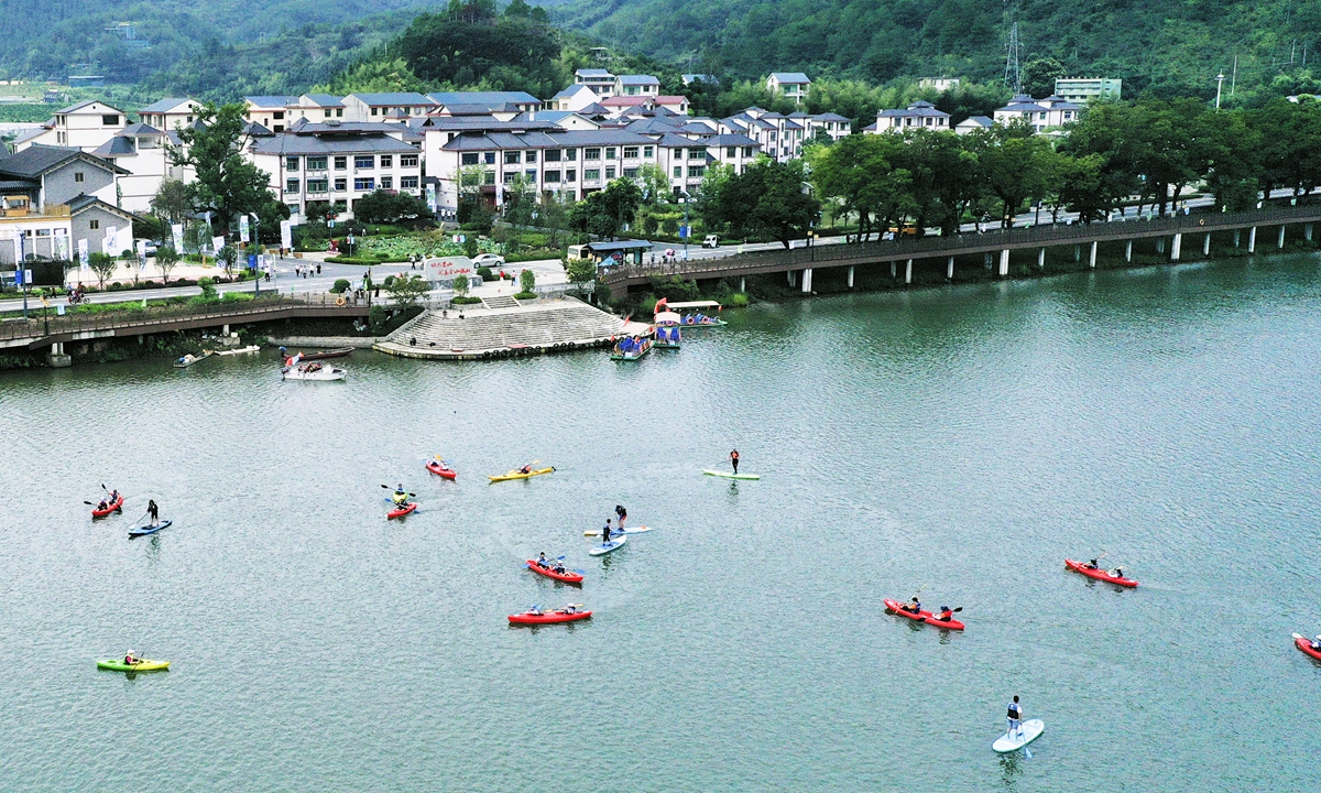 People are kayaking and paddleboarding on Jinxi River in Jiangle county, East China's Fujian Province on August 15, 2023, the country's first National Ecology Day. Jiangle has a forest coverage rate of 81.3 percent and is a key eco-protection site. Photo: cnsphoto