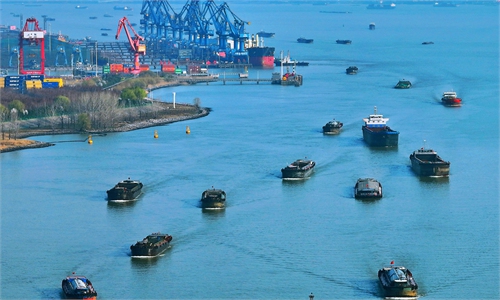 Large container ship Cosco Shipping Lotus docks at a terminal of Lianyungang port in Lianyungang, East China's Jiangsu Province on April 5, 2023. Photo: VCG