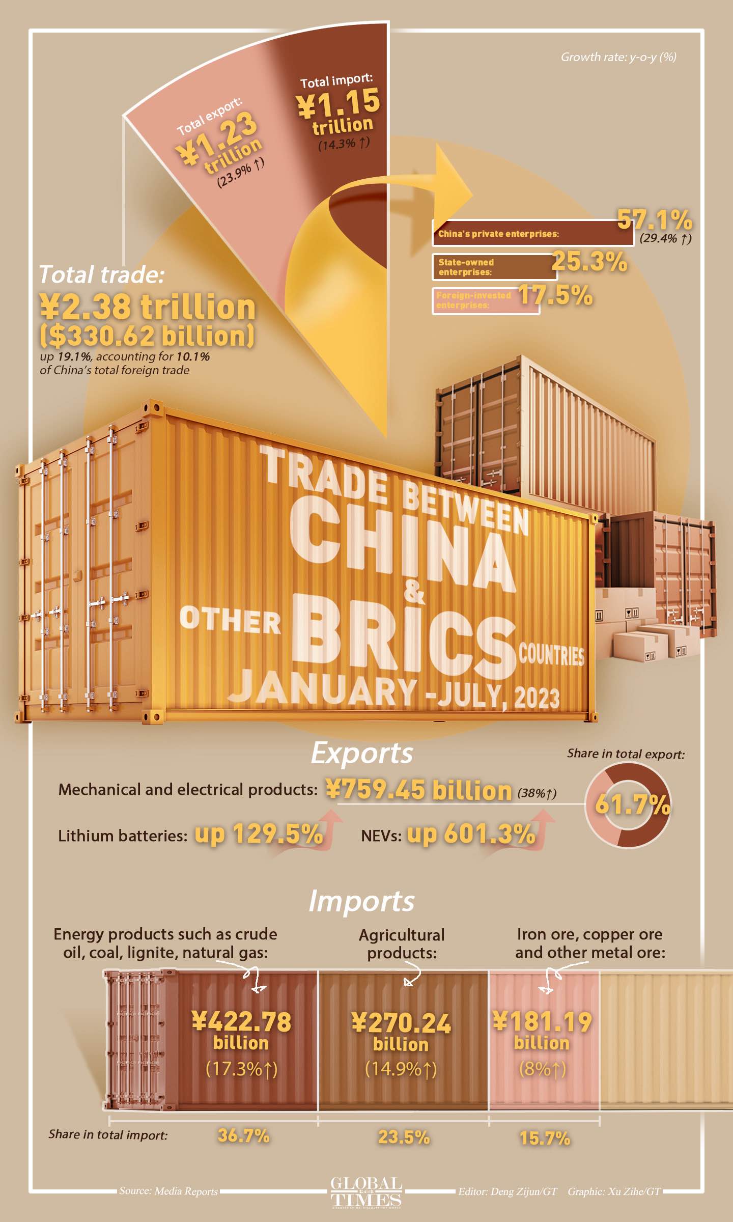Trade between China and other BRICS countries in the first 7 months of 2023