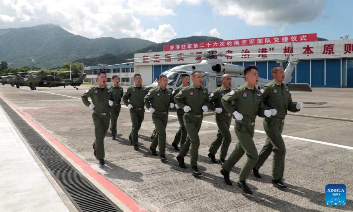 This photo taken on Aug 25, 2023 shows a rotation ceremony of the Hong Kong Garrison of the Chinese People's Liberation Army in Hong Kong, south China. The Hong Kong Garrison of the Chinese People's Liberation Army on Friday completed the 26th rotation since it began garrisoning Hong Kong in 1997. Photo:Xinhua