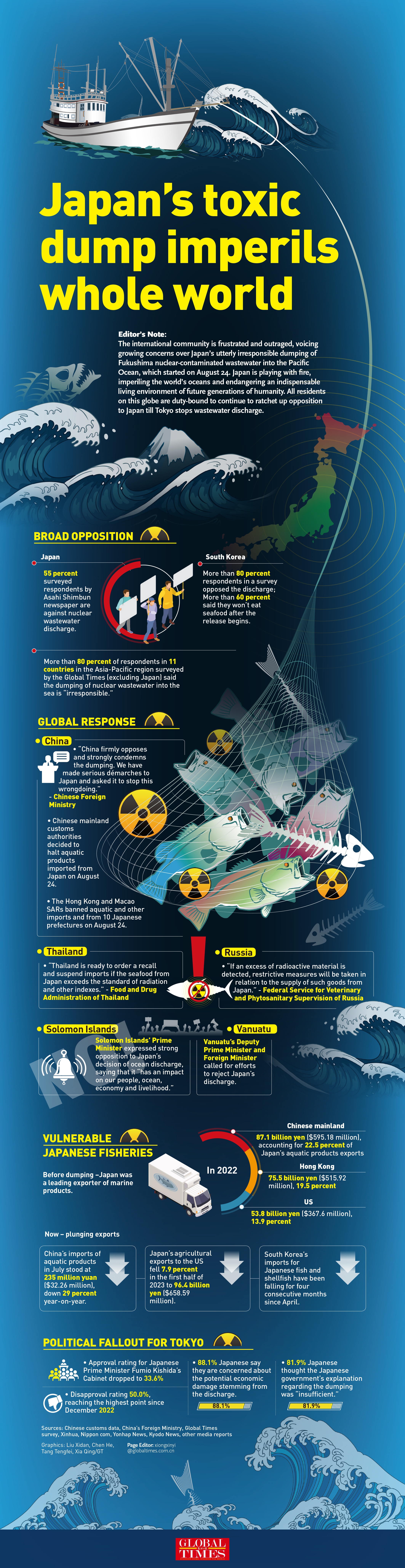 Japan's nuclear contaminated wastewater dump damages ocean, endangering humankind's habitat Inforgraphic: GT