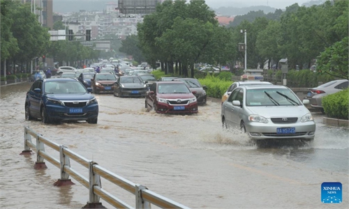 "Raining cats and dogs since last evening, with thunderstorms. Shopping malls and roads are flooded like swimming pools and rivers. The condition is critical. My observation is that leaves, branches and solid waste were left unattended after typhoon Saola brought destruction to Hong Kong last weekend. All this debris has been washed into drains and clogged them up," Chu Kar-kin, a veteran current affairs commentator based in Hong Kong, told the Global Times on Friday