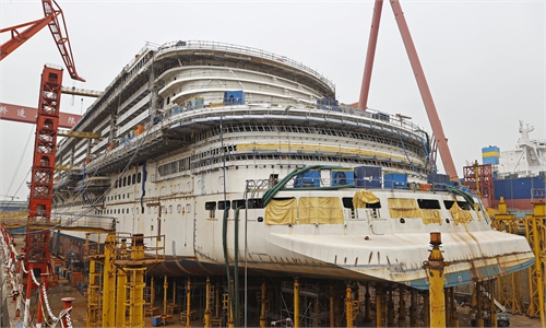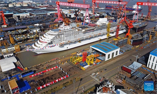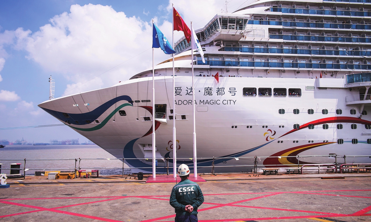China's first domestically-built large cruise ship, Adora Magic City, starts a new sea trial in Shanghai on September 7, 2023. The 135,500-ton ship will undergo 90 tests, including a noise test in the vibration area, exhaust gas cleaning and unmanned machinery spaces. Photo: VCG