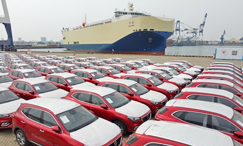 Cars ready for export in Yantai, East China's Shandong Province File Photo: VCG
