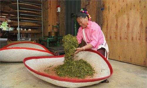 "We practice moderate and reasonable harvesting and utilization of ancient tea trees. Currently, we mainly harvest tea leaves in spring and autumn, while leaving the trees undisturbed during the summer to allow them to accumulate nutrients. The picking is still done manually, and we are careful to leave tender buds on the new shoots," Xiangong, a Dai woman, told the Global Times.