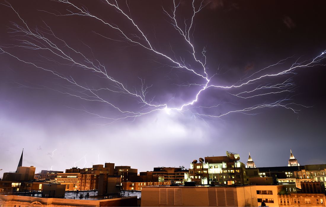 Lightning brightens the night sky over Washington, DC, during a rainstorm on April 20, 2015. Photo: CFP