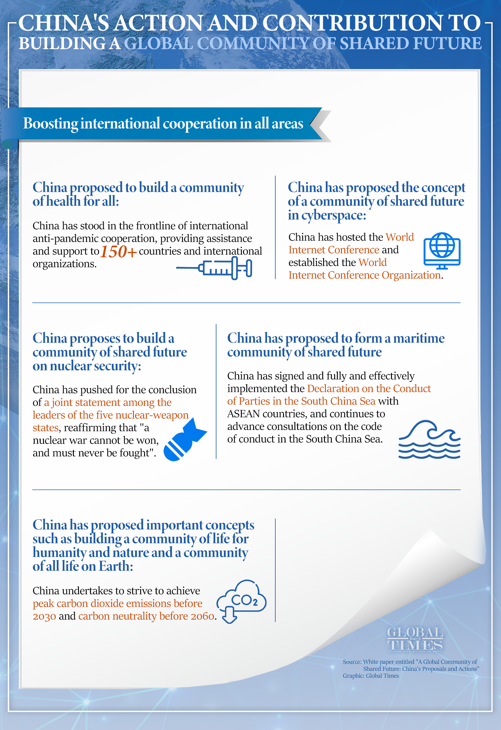 China's action and contribution to building a global community of shared future. Graphic: GT