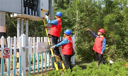 Workers check a 1,000-kilovolt ultra-high voltage electricity transmission line in Suzhou, East China's Jiangsu Province on March 15, 2023. Cities in China are starting seasonal power checks to ensure a stable power supply for the summer. Photo: cnsphoto