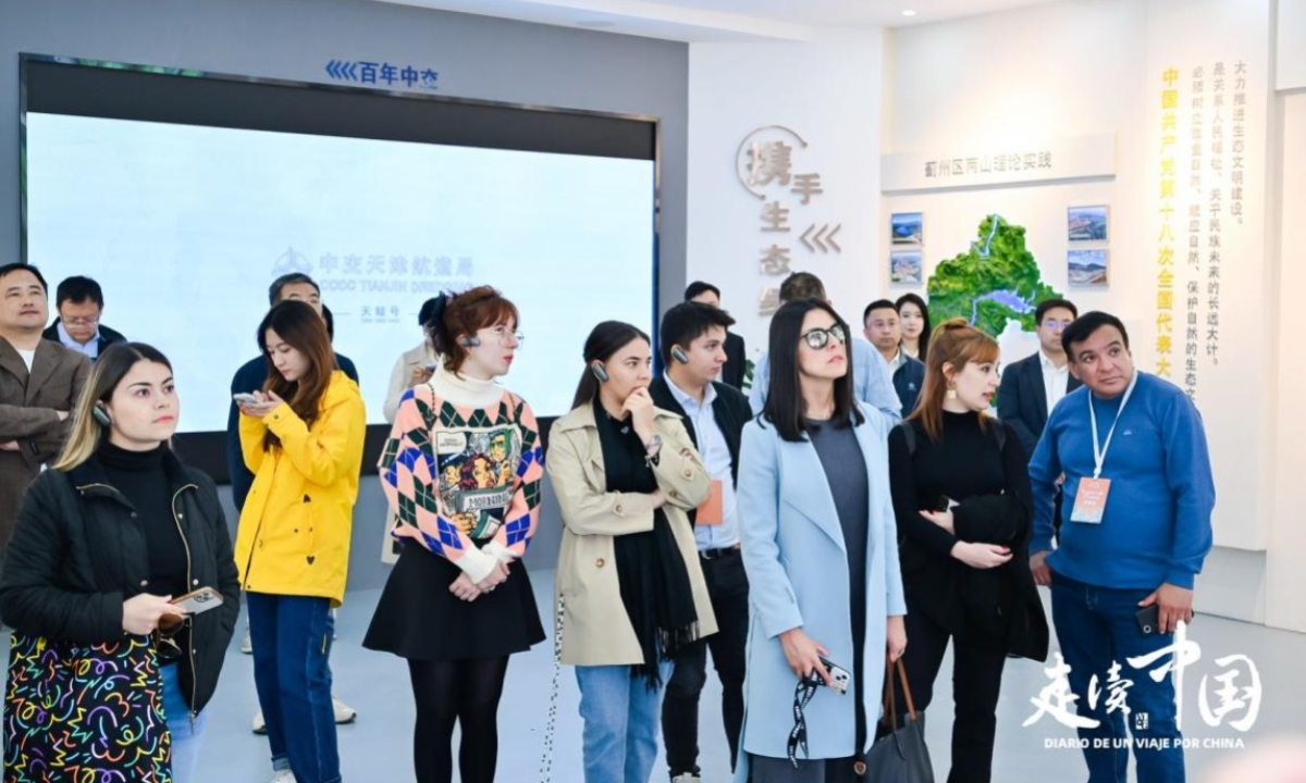 Foreign journalists visit the Jizhou Ecological Restoration Exhibition Hall in Jizhou district, north China's Tianjin.