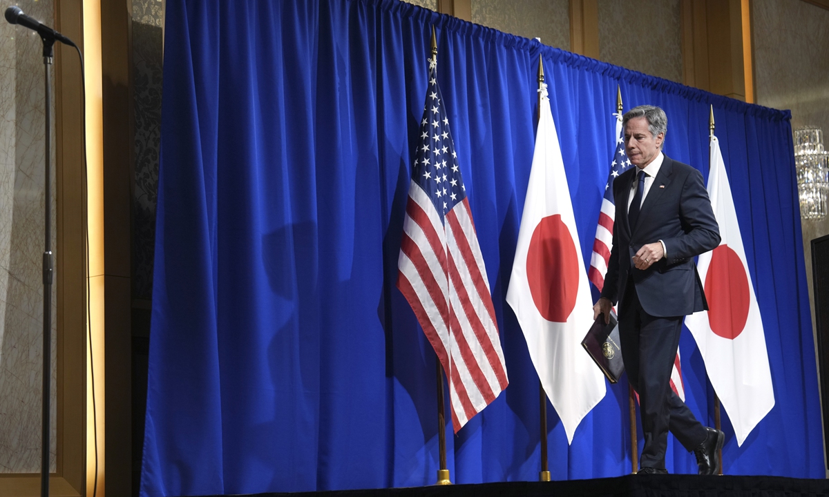 US Secretary of State Antony Blinken walks away after his news conference after the Group of 7 Foreign Ministers meetings Wednesday, Nov. 8, 2023, in Tokyo. Photo: VCG