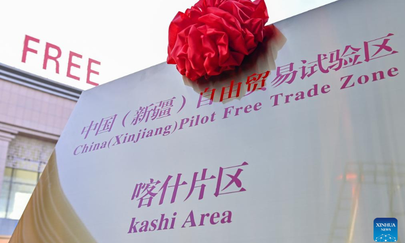 Photo taken on November 11, 2023 shows a name sign of Kashi Area of China (Xinjiang) Pilot Free Trade Zone in Kashi Prefecture, Northwest China's Xinjiang Uygur Autonomous Region. Photo: Xinhua