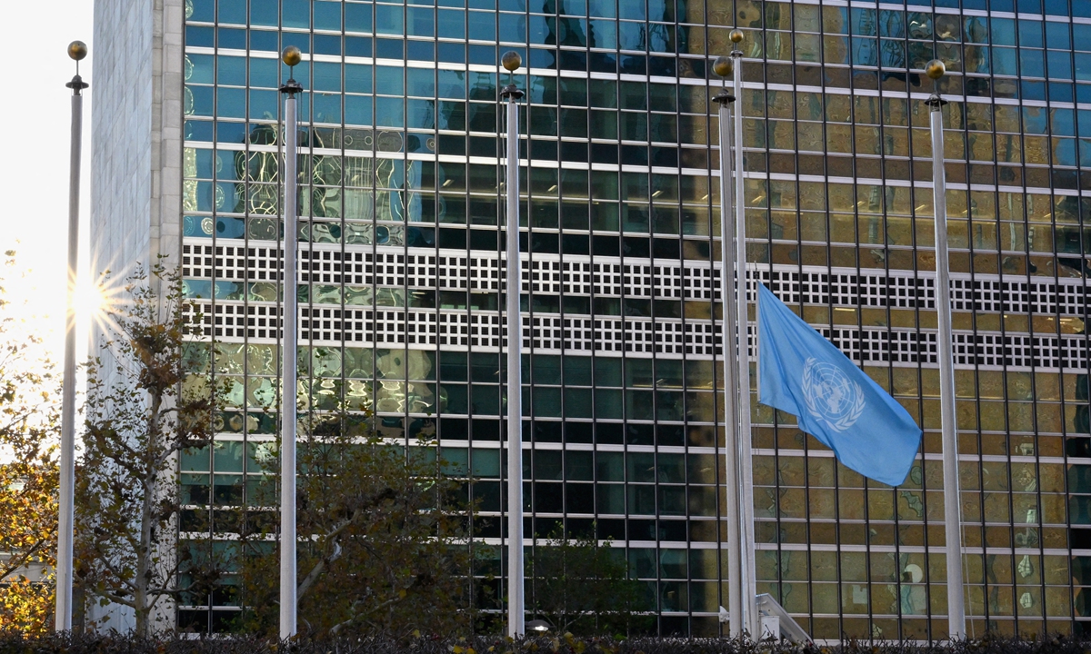A UN flag flies at half-mast at the UN headquarters in New York on November 13, 2023. UN lowered the flags of its institutions all over the world for the 101 staff killed so far during the conflict in Gaza. Photo: AFP