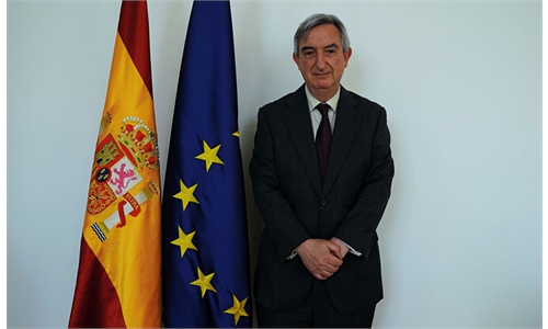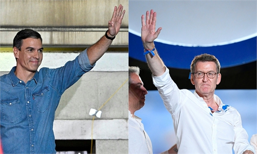 Spanish Socialist leader Pedro Sanchez (left) takes the oath of office as prime minister before King Felipe VI (right) during a ceremony at the Zarzuela Palace in Madrid, Spain on November 17, 2023. Sanchez has been re-elected as Spanish prime minister after winning an absolute majority in the parliament, obtaining the backing of 179 lawmakers in the 350-seat chamber. Photo: VCG