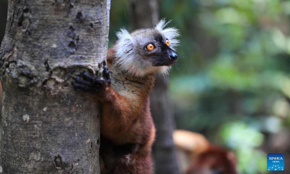 This photo taken on Nov 26, 2023 shows a red ruffed lemur in a reserve area in Toamasina, Madagascar. Madagascar has a large number of species of lemurs. Photo:Xinhua