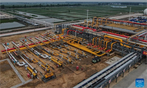 A staff member works at the Yongqing compressor station of the Changling-Yongqing section of the China-Russia east-route natural gas pipeline in Yongqing county, North China's Hebei Province, December 3, 2020. Photo: Xinhua