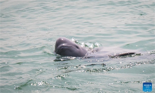 After it was sent to the ocean park, a preliminary examination was conducted on the finless porpoise. At present, the finless porpoise still suffers serious unbalance status and cannot stay balanced in the water without being helped, Liu said.