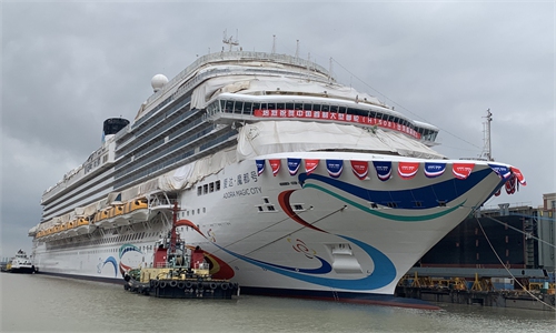 Large cruise ships, along with aircraft carriers and liquefied natural gas carriers, are known as the three "crown jewels" of the shipbuilding industry. The completion of the