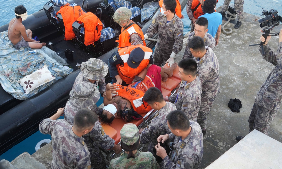 Editor's Note: Although the US and the Philippines have repeatedly provoked China in the South China Sea issue, weaponizing fishermen against China, the story of the People's Liberation Army (PLA) Navy rescuing foreign fishermen in the South China Sea continues to uphold the humanitarian principle of "search and rescue knows no borders."