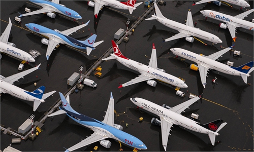 Dave Calhoun, CEO of Boeing, is surrounded by media on January 24, 2024 in Washington DC as he leaves a meeting with senators on recent safety issues which caused the grounding of the 737 MAX 9 planes. The Federal Aviation Administration announced the planes could return to service after inspection procedures. Photo: VCG