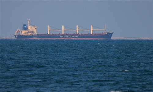 A ship transits the Suez Canal towards the Red Sea on January 10, 2024 in Ismailia, Egypt. Photo:VCG