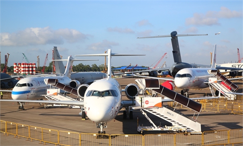 The C919 aircraft is seen at a flight performance during the 2024 Singapore Airshow on February 20, 2024. Photo: VCG