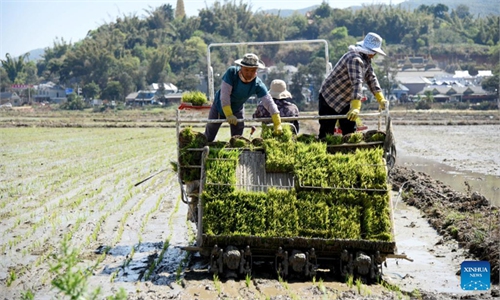 A vegetable farmer harvests cherry tomatoes in a greenhouse in Yuncheng, North China's Shanxi Province on March 7, 2024. Local authorities are striving to optimize the agriculture structure to boost farmers' incomes and support rural revitalization. In 2023, the total fruit output of Yuncheng reached 7.32 million tons, a yearly increase of 5.7 percent. Photo: VCG