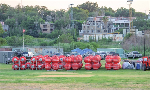 A Texas National Guard soldier stands atop a barrier of shipping containers and razor wire while guarding the US-Mexico border on March 17, 2024 (local time) in Eagle Pass, Texas. Texas National Guard troops have fortified the US-Mexico border with a vast amount of razor wire as Texas Governor Greg Abbott is clashing with the Biden administration on border policies. Photo: VCG