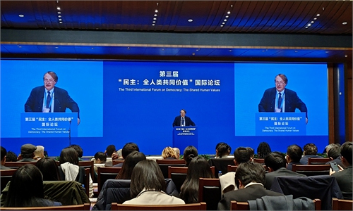 A Russian expert delivers a speech at the Third International Forum on Democracy: The Shared Human Values held in Beijing on March 20, 2024. Photo: Qian Jiayin/GT