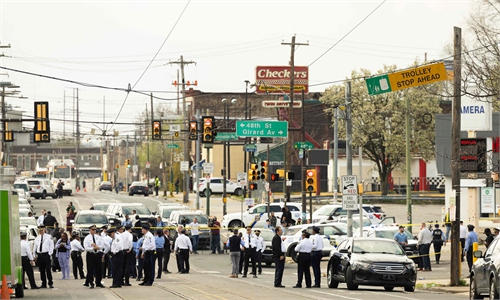Police gather at an intersection after a shooting during a large Muslim religious celebration in a park in ...