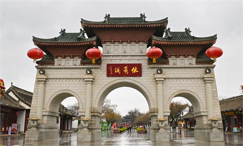 Fan Zhengwei (center) introduces the exhibition of the 15th anniversary of the Global Times English Edition to the guests.
