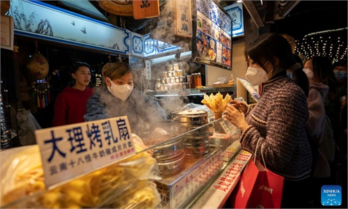 The jacaranda trees on Jiaochang Middle Road in Kunming, Southwest China's Yunnan Province, are in full bloom, attracting tourists to come and enjoy the flower-viewing frenzy on May 4, 2024. Photo: VCG