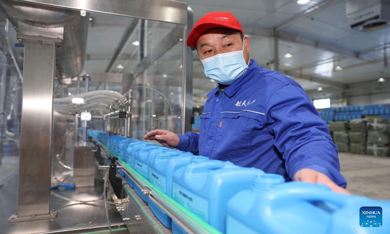A man works at a biotech company of the Xinjiang Production and Construction Corps in northwest China's Xinjiang Uygur Autonomous Region, Dec. 21, 2023. (Xinhua/Hu Huhu)