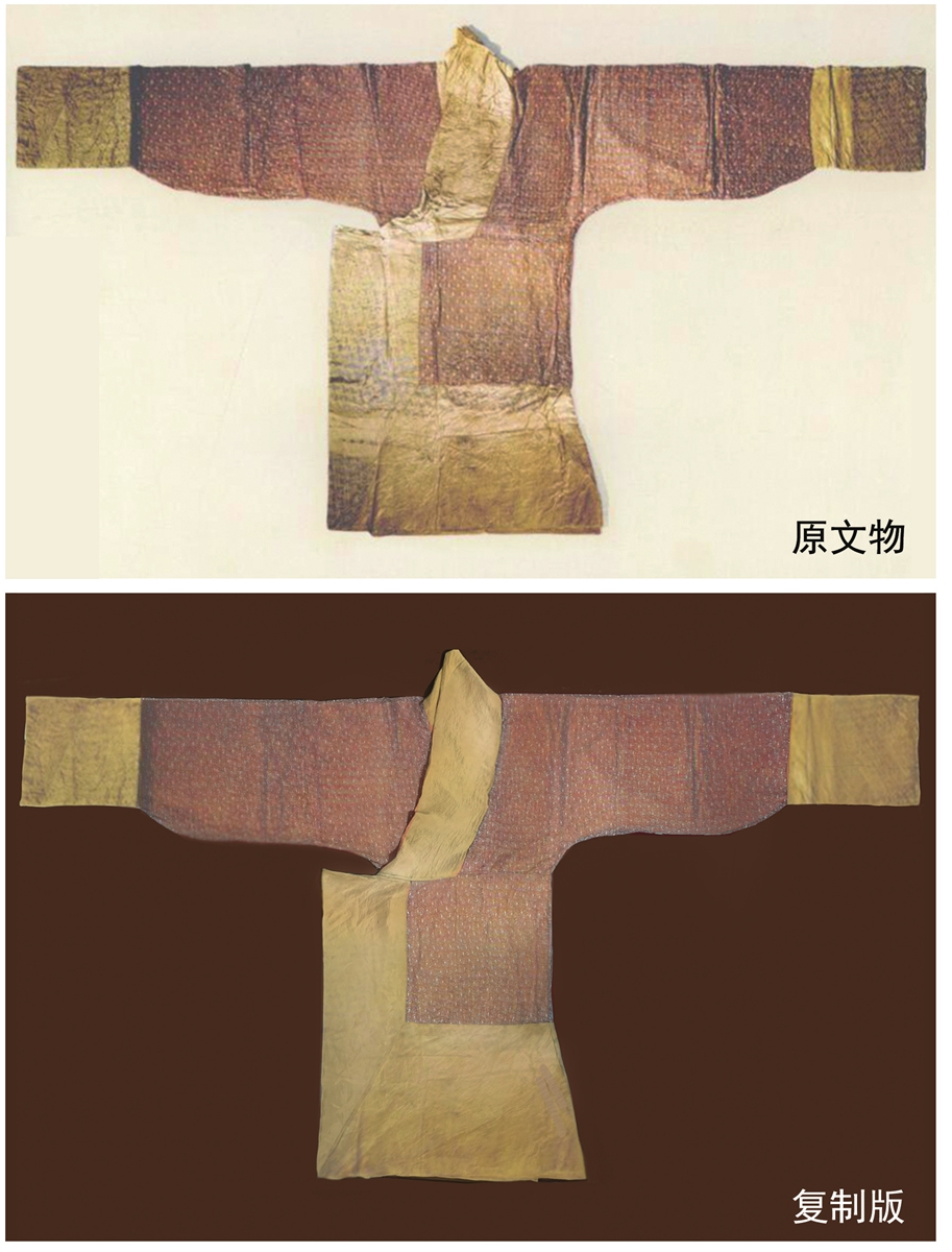 The Western Han Dynasty padded gauze robe (above) and a replica (below) produced by Yang Jiyuan and her team Photo: Courtesy of Nanjing Yunjin Research Institute