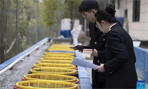 Visitors look at a model of a deep-sea aquaculture platform at the 2024 China (Fuzhou) International Seafood & Fisheries Expo on May 31, 2024 in Fuzhou, East China's Fujian Province. Photo: cnsphoto