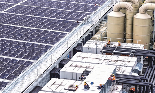 Villagers in Changgang village, Nantong, East China's Jiangsu Province transplant rice seedlings into paddies on June 18, 2024, as the summer solstice approaches. Photo: VCG