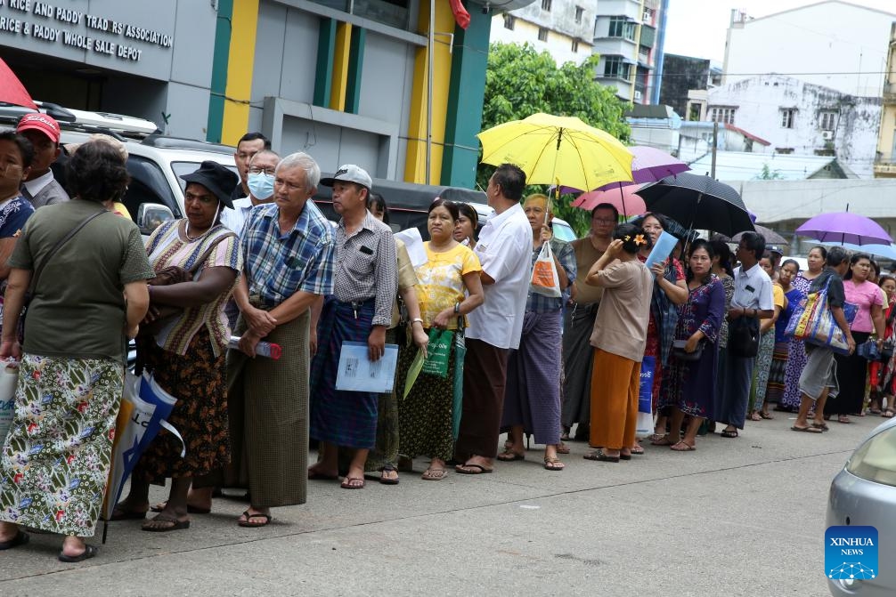 People stand in a queue to buy rice outside the Rice and Paddy Wholesale Depot in Yangon, Myanmar, June 25, 2024.(Photo: Xinhua)