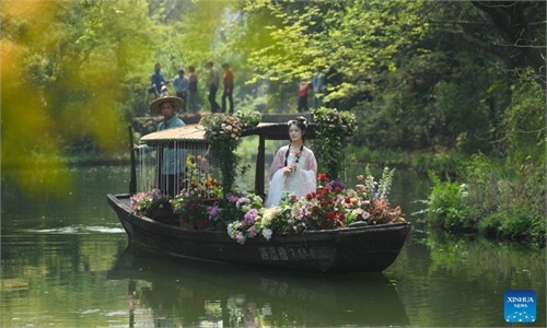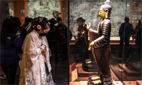 Visitors explore traditional Chinese clothing at a Chinese clothing culture exhibition at the China Craft and Art Museum in Beijing on July 3, 2024. The exhibition, which will run until September 8, showcases the various styles of Chinese clothing from different periods and regions. Photo: VCG